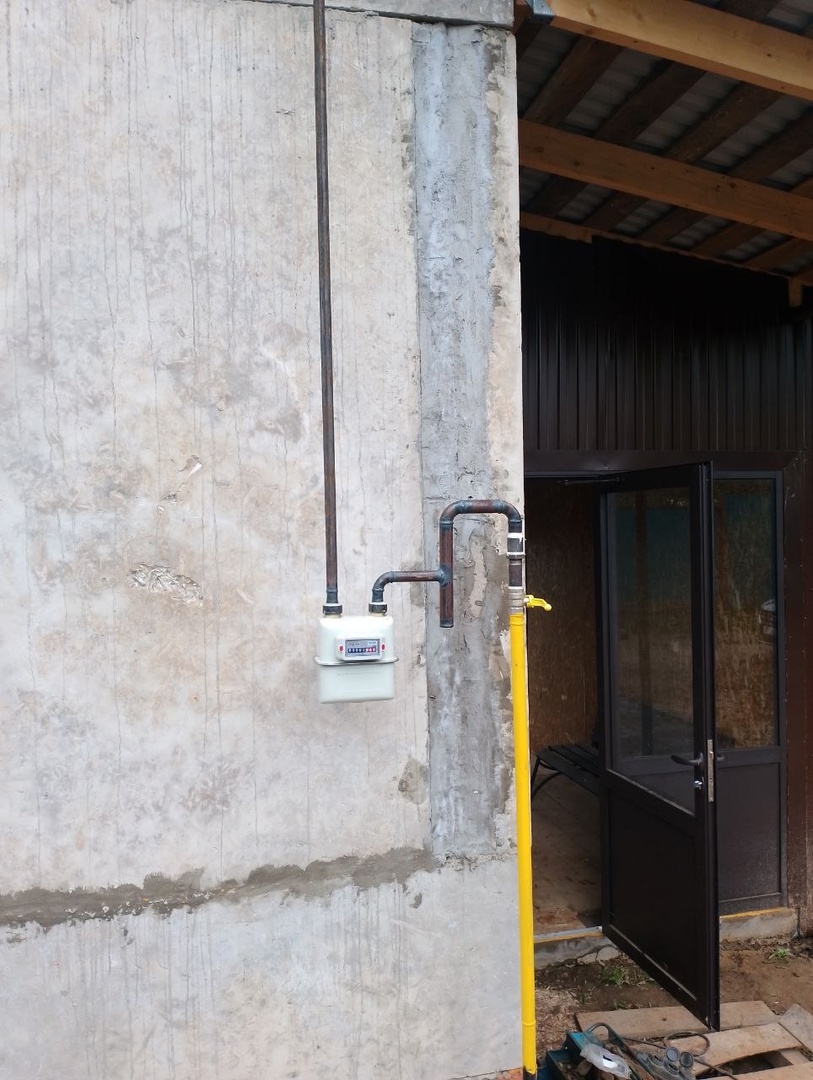 - Выполнили монтаж газопровода внутри участка, установили газовый счетчик и сигнализатор загазованности с клапаном