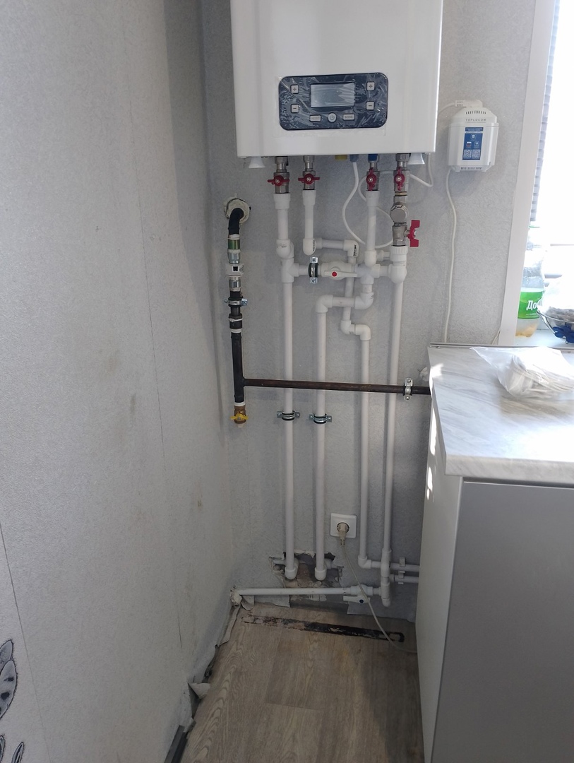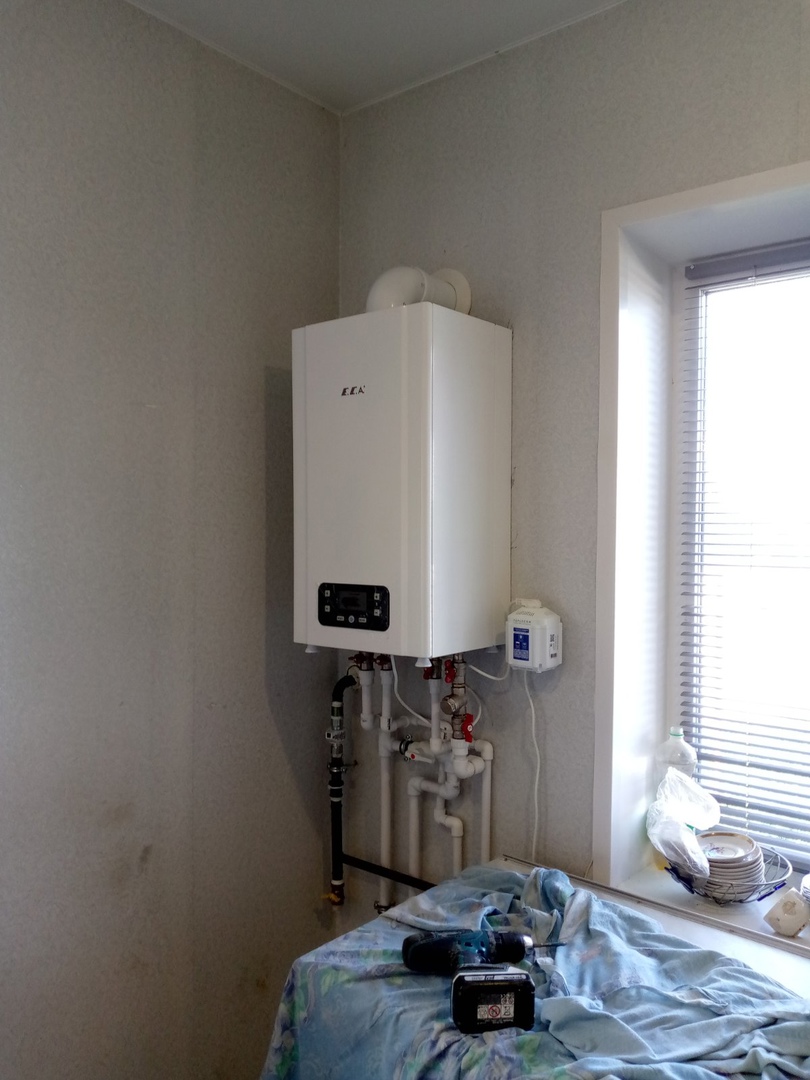 - Смонтировали газовый котел ECA и подключили к существующей системе отопления